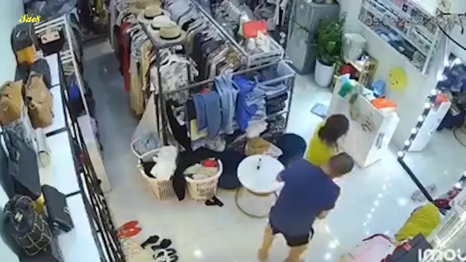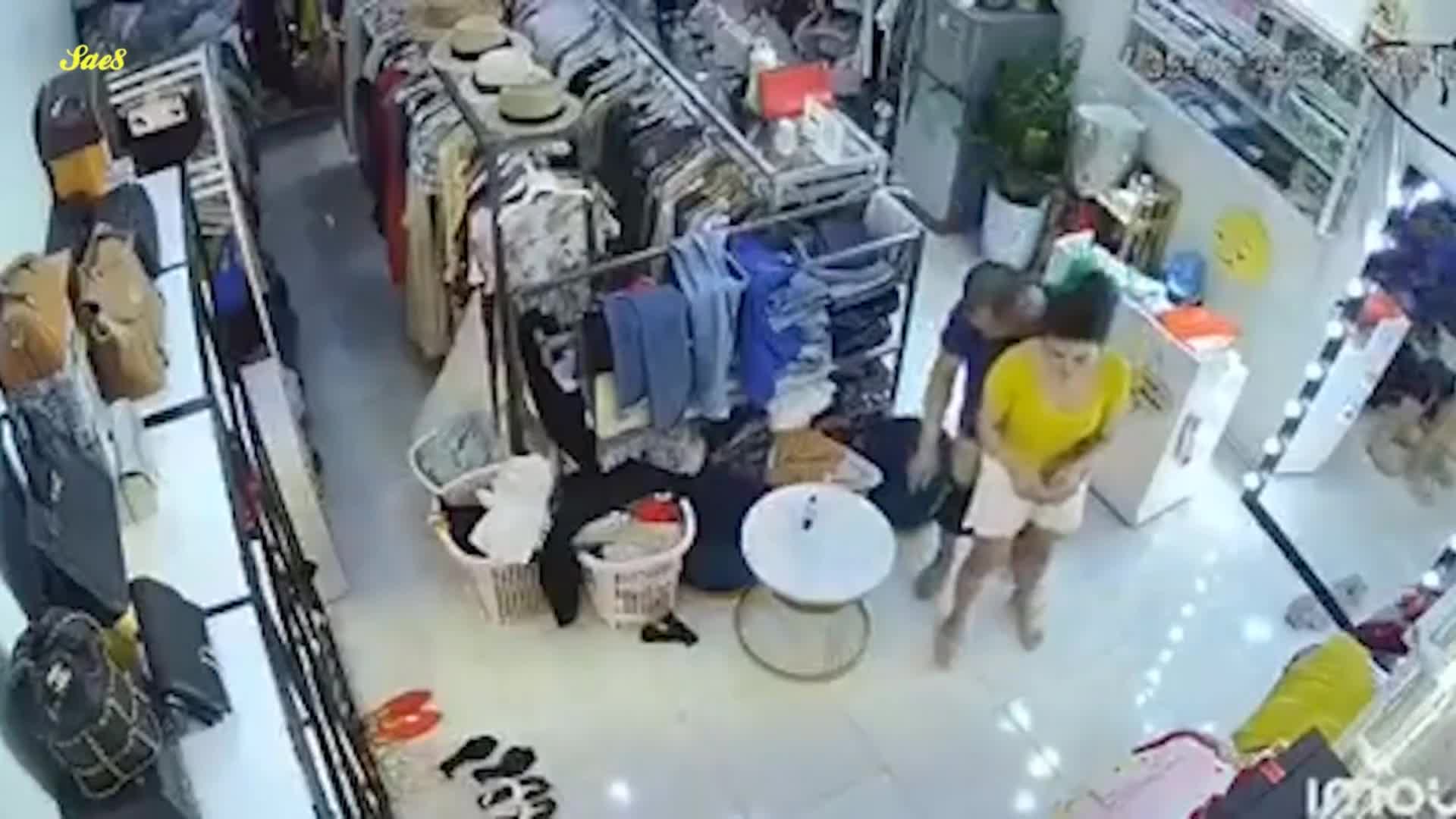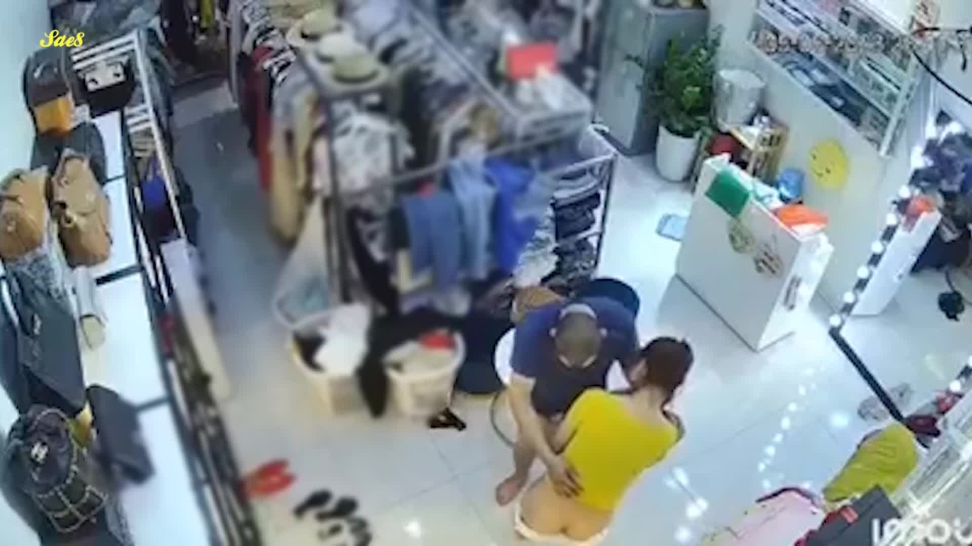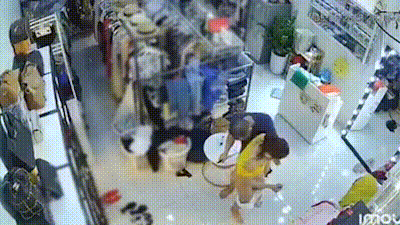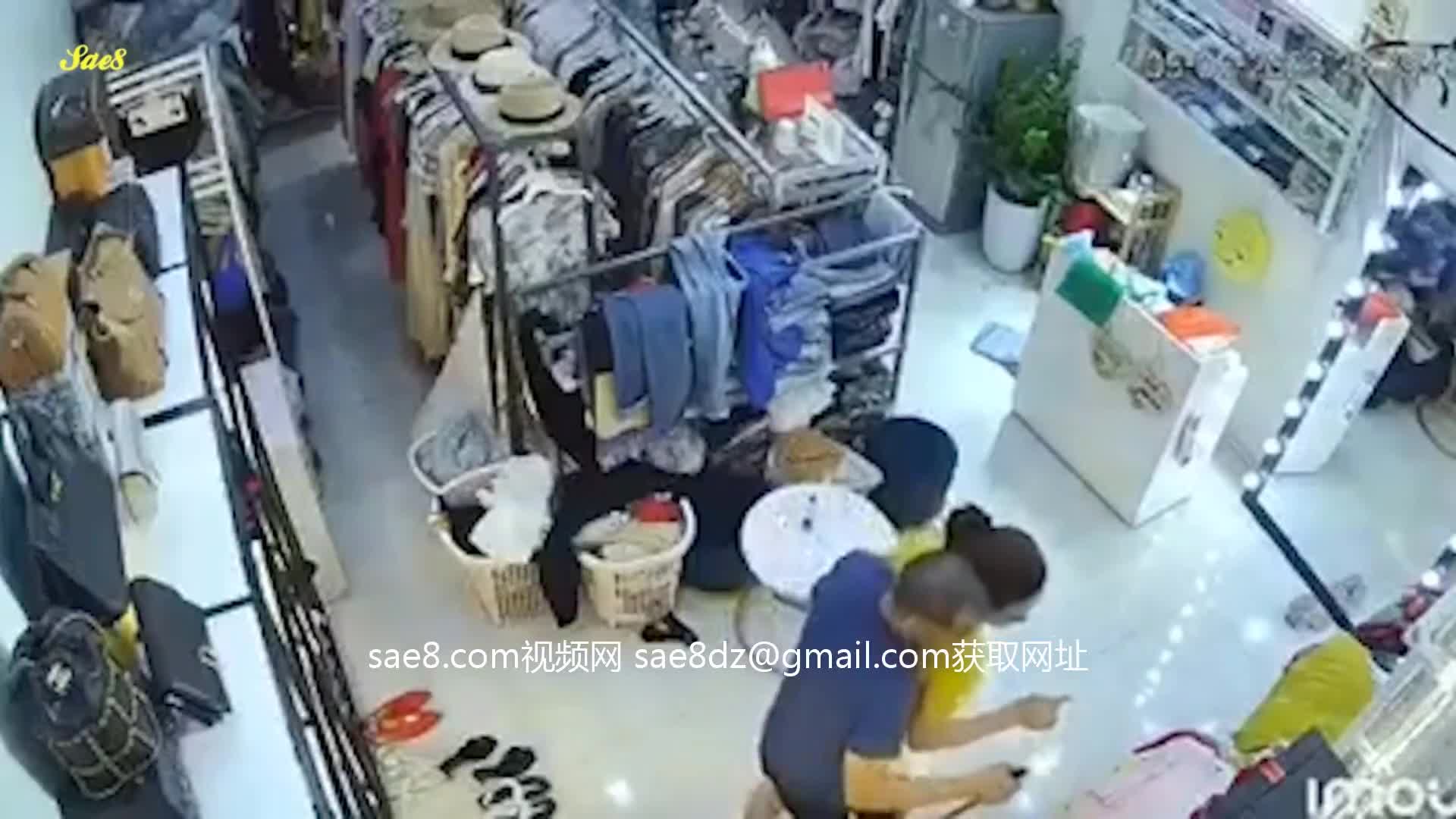 监控摄像头真实记录服装店美艳老板娘遭遇持刀歹徒劫色教科书式自救