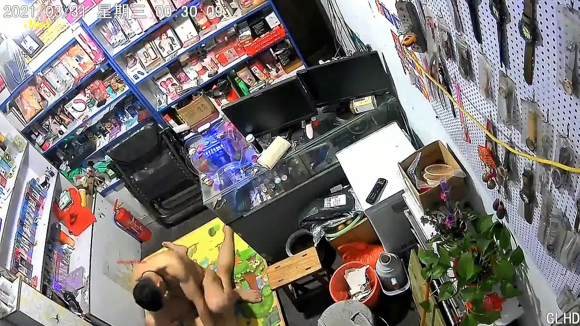 摄像头偷拍成人性用品商店老板娘打地铺会情人。
