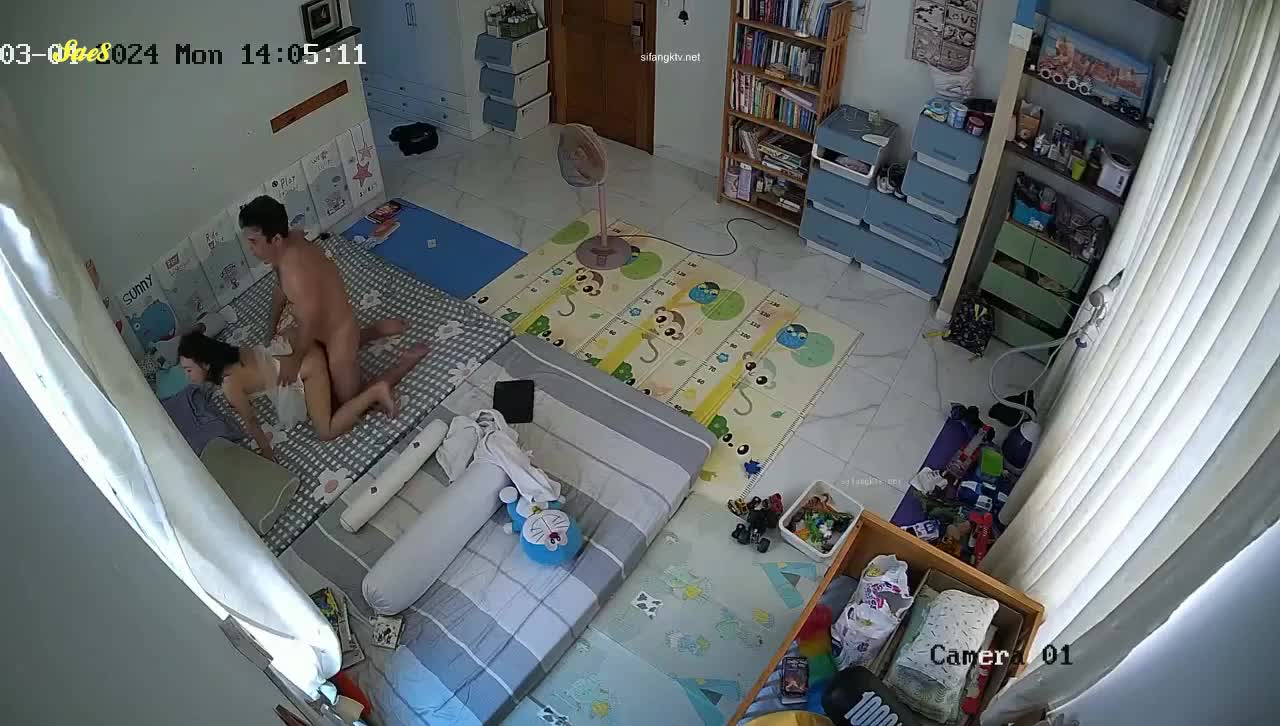黑客破解家庭摄像头偷拍白天把孩子送去学校夫妻肆无忌惮的做爱